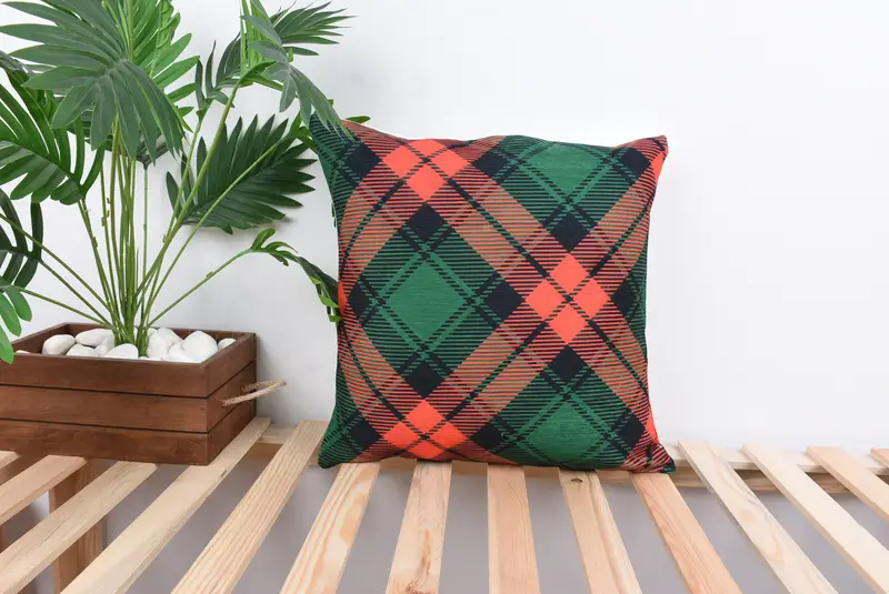 Handgefertigtes grün-rot besticktes Kissen, quadratisches Vintage-Kissen