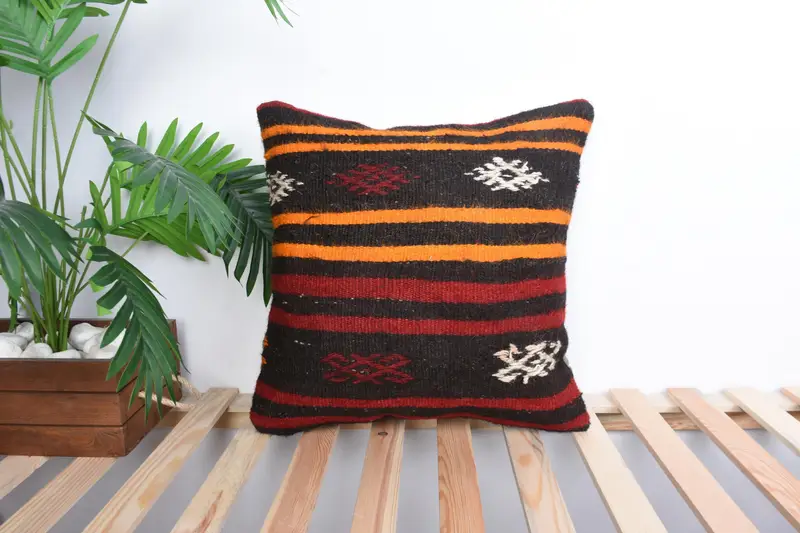 Orange & Braun besticktes Wurfkissen, Vintage geometrisches Kissen