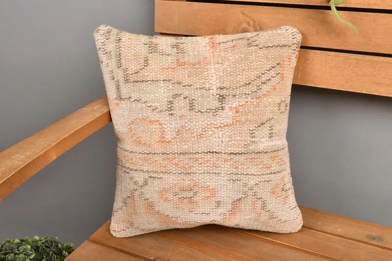 Beige & Orange Southwestern besticktes Wurfkissen, vielseitiges 12x12 Kissen
