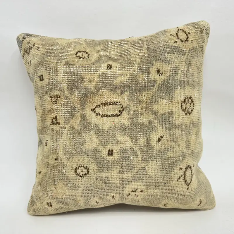 Braunes Leinen-Wurfkissen mit Blumenstickerei, Vintage-Reißverschlusskissen