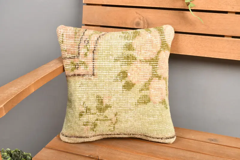 Beige besticktes Southwestern-Wurfkissen, handgefertigtes Vintage-Kissen