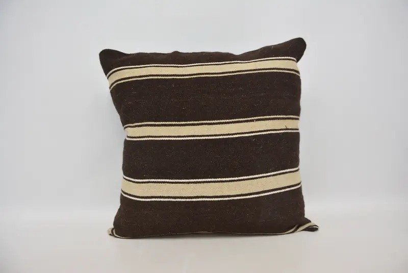 Braun gestreiftes Wurfkissen, 28x28 besticktes Hanfkissen
