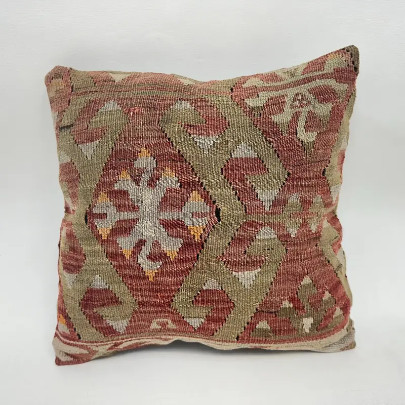 Lila & Braunes geometrisches Kissen, Vintage besticktes Kissen