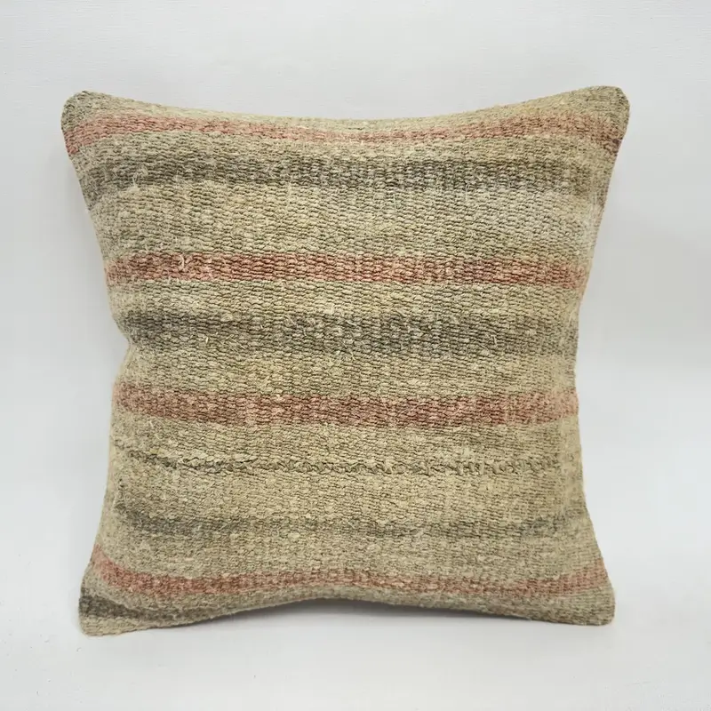 Beige & braun gestreiftes Wurfkissen, Vintage besticktes Kissen