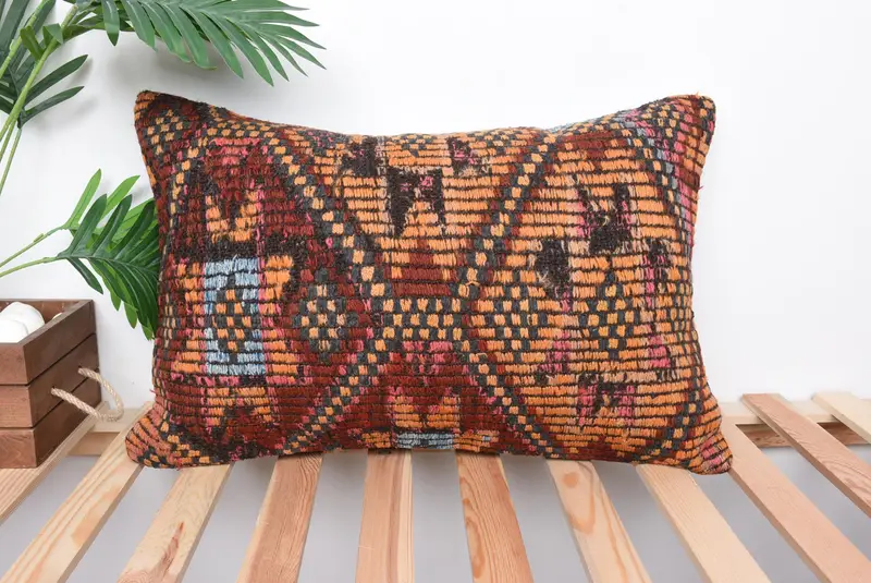 Rot & Orange besticktes Wurfkissen, handgemachtes geometrisches Kissen
