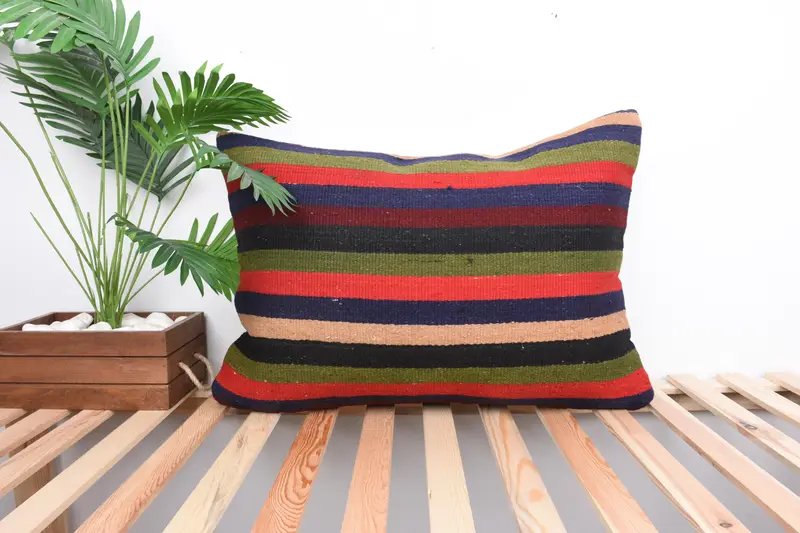 Grün-rot gestreiftes Kissen, besticktes Vintage-Wurfkissen