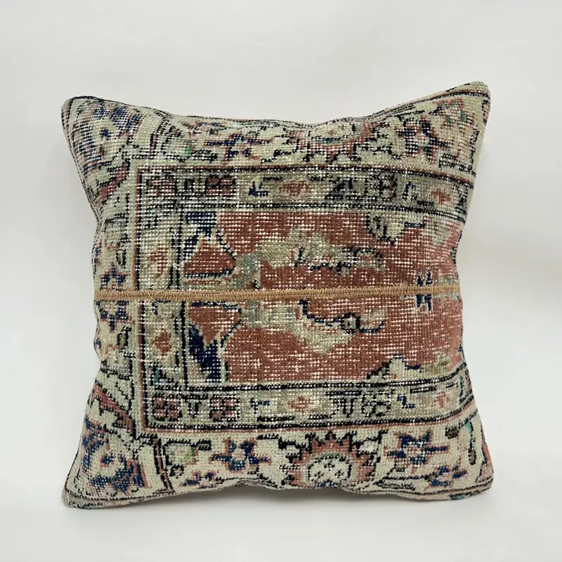 Patchwork-Wurfkissen in Beige und Bronze, besticktes Vintage-Kissen