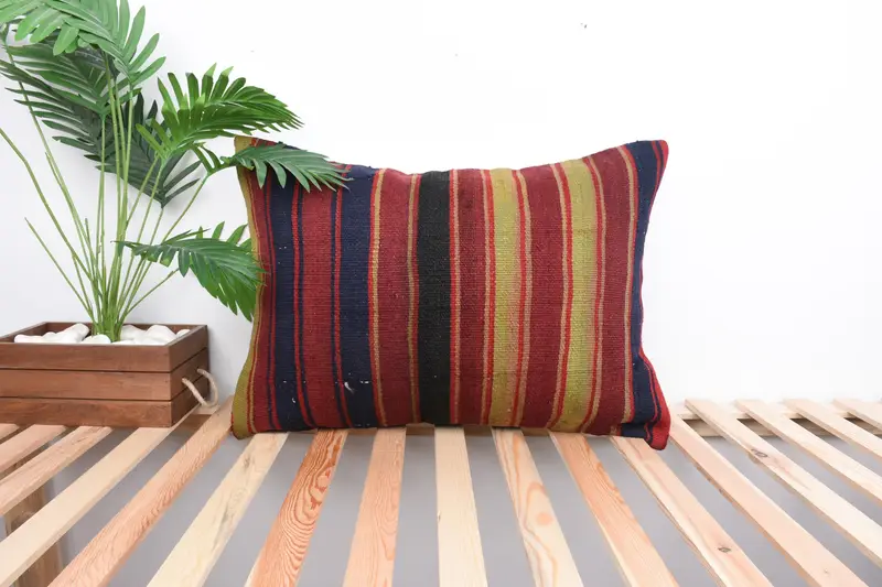 Blau-rot gestreiftes Kissen, besticktes Vintage-Kissen