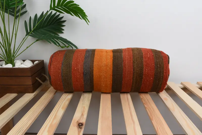 Rot und Braun besticktes Wurfkissen, handgemachtes Vintage Kissen
