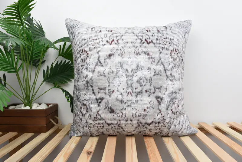 Besticktes Beige- und Braunes Wurfkissen, quadratisches Vintage-Kissen