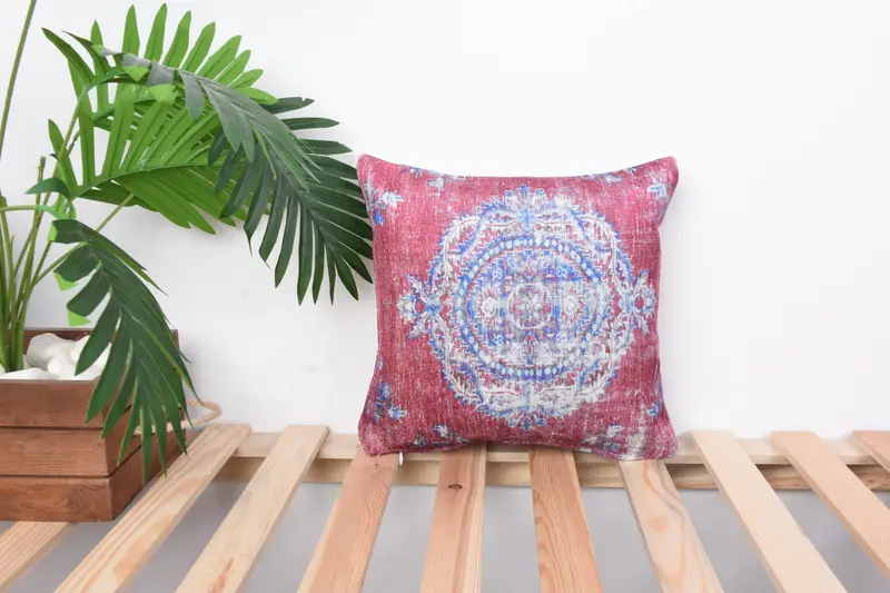 Rot-grün gestreiftes Kissen, besticktes Leinenkissen