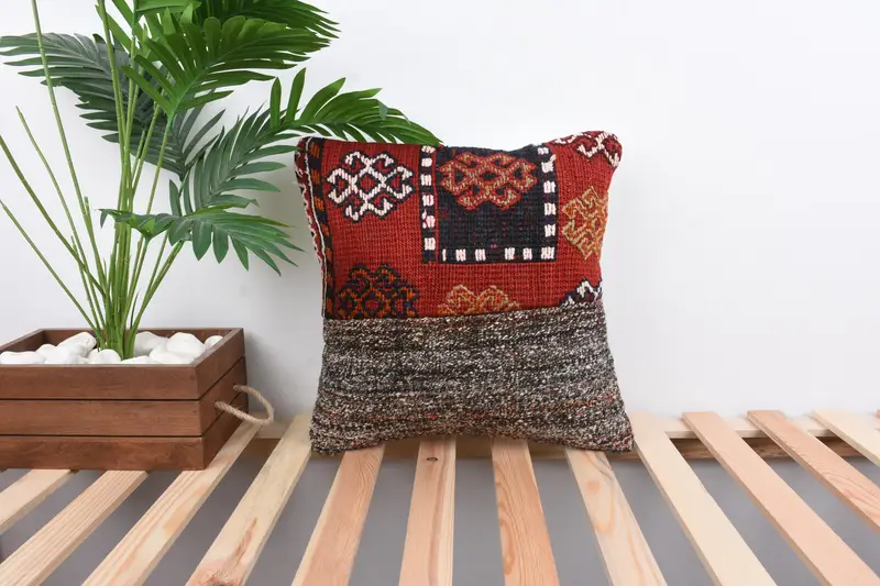 Rot-weißes Patchwork-Wurfkissen, 16x16 besticktes Kissen