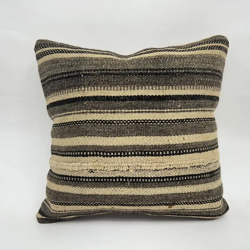 Grau & Beige besticktes Patchwork-Wurfkissen, handgefertigtes Kissen