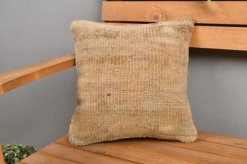 Beigefarbenes Southwestern-Wurfkissen, Vintage besticktes Leinenkissen