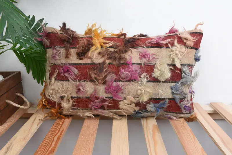 Handgefertigtes lila und bronzefarbenes gestreiftes Kissen, vielseitiges Leinenkissen
