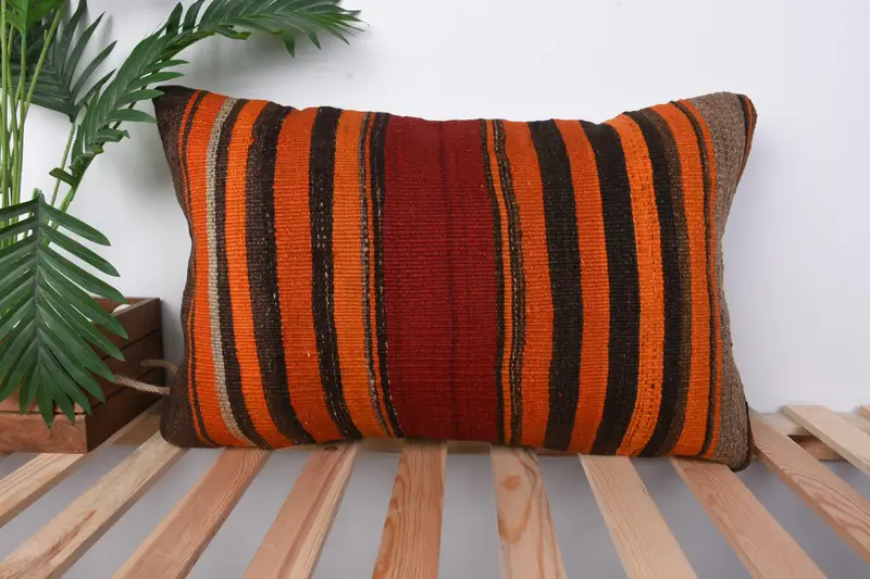 Rot & Orange gestreiftes Kissen, handgefertigtes besticktes Kissen