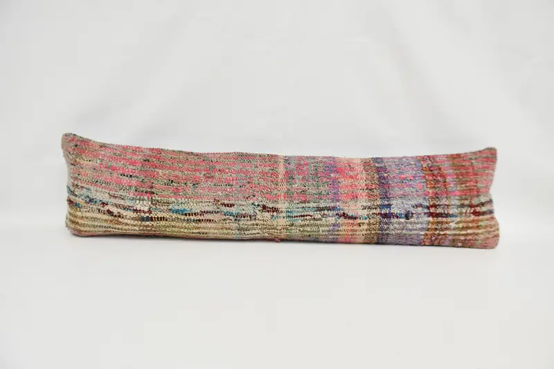 Bestickter Hanf-Kissenbezug, gestreiftes Vintage-Wurfkissen