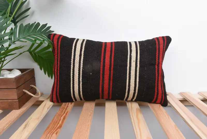Braun & Rot gestreiftes Kissen, handgefertigtes besticktes Kissen
