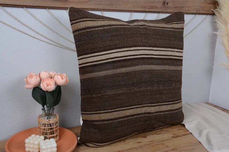 Handgefertigtes gestreiftes Kissen, 28x28 besticktes Leinenkissen