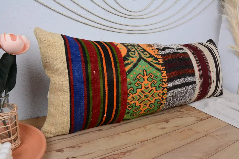 Handgefertigtes Patchwork-Wurfkissen in Grün und Rot, Vintage-Rechteckkissen