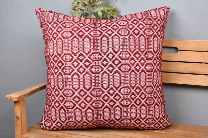 Geometrisches Kissen in Rot und Beige, handgefertigtes Vintage-Kissen