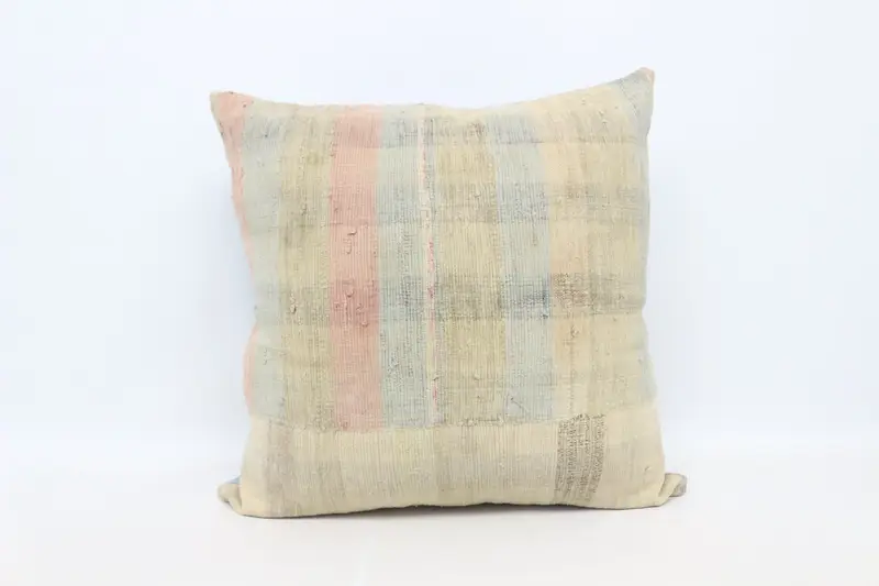 Beige gestreiftes Wurfkissen, Vintage besticktes Rechteckkissen