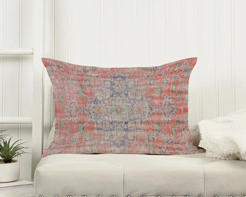 Rot & Bronze gestreiftes Wurfkissen, besticktes quadratisches Vintage-Kissen
