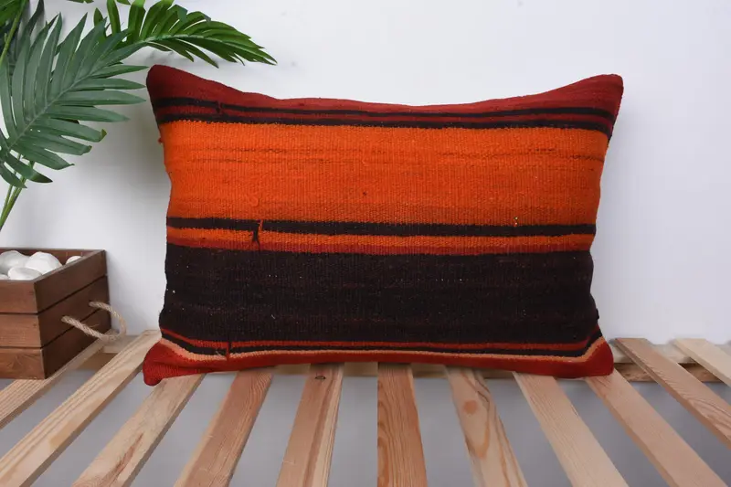 Rot-braun gestreiftes Kissen, 16x24 besticktes Vintage-Kissen