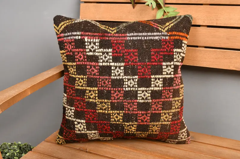 Rotes südwestliches besticktes Kissen, 16x16 Vintage Wurfkissen