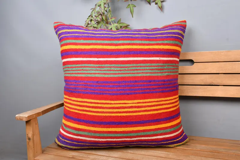 Blau-rot gestreiftes Kissen, besticktes Vintage-Kissen