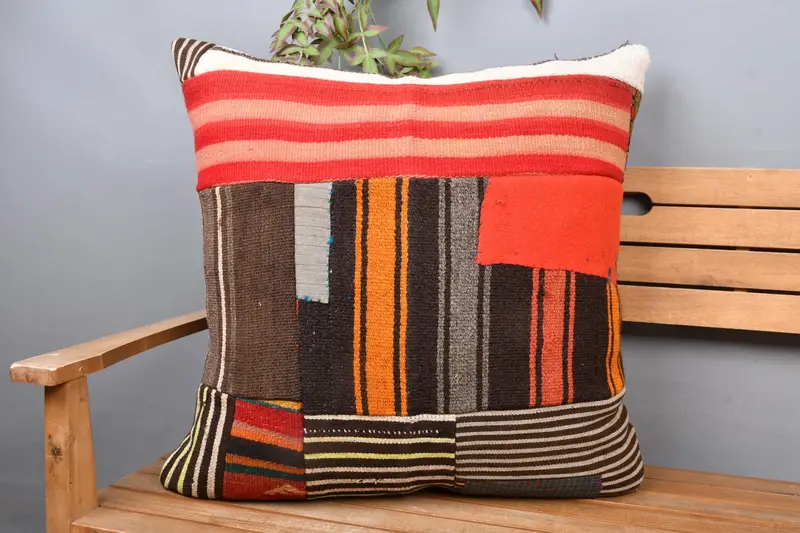 Rot-braunes Patchwork-Wurfkissen, 28x28 besticktes Kissen