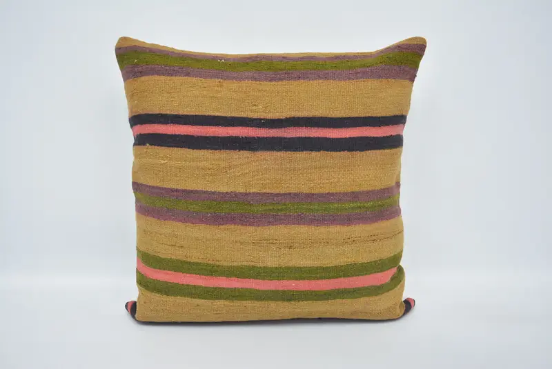 Handgefertigtes gestreiftes Hanfkissen, Vintage besticktes Kissen
