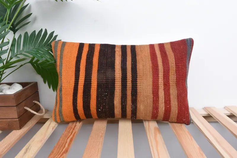 Handgefertigtes gestreiftes Kissen in Orange und Rot, vielseitiges 12x20-Wurfkissen