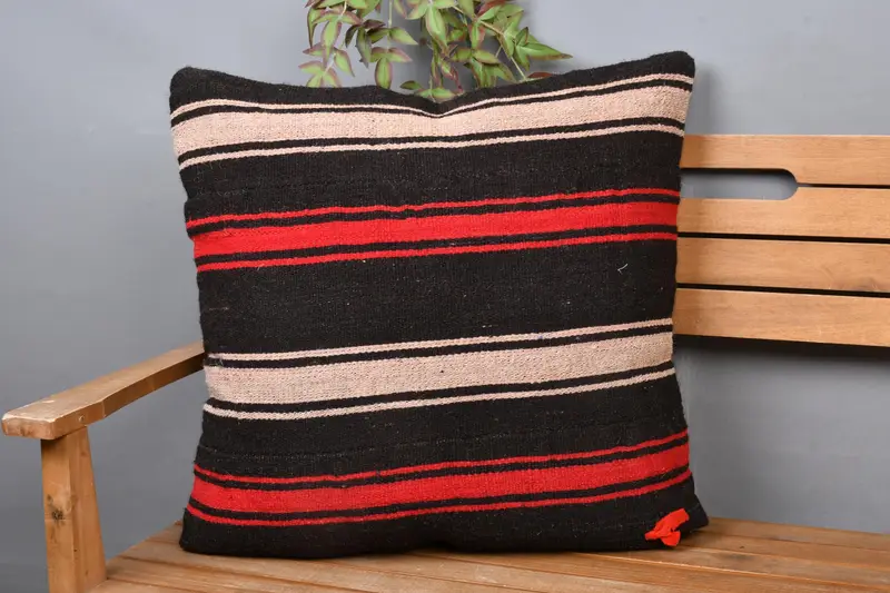 Braun & Beige gestreiftes Kissen, handgefertigtes besticktes Kissen