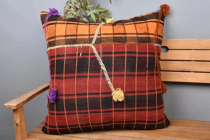 Rot-braun gestreiftes Kissen, Vintage besticktes Kissen