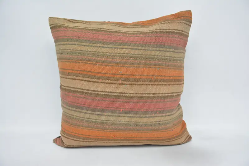 Braun & Orange gestreiftes Wurfkissen, 28x28 besticktes Kissen