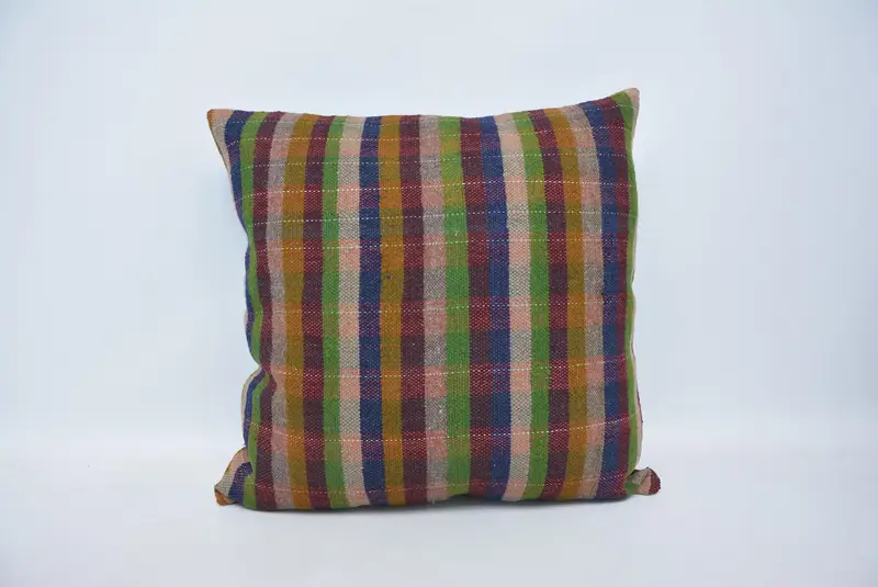 Handgefertigtes blau gestreiftes Kissen, Vintage besticktes Kissen
