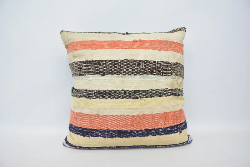 Handgefertigtes gestreiftes Kissen aus Hanf und Wolle, Vintage-Kissen