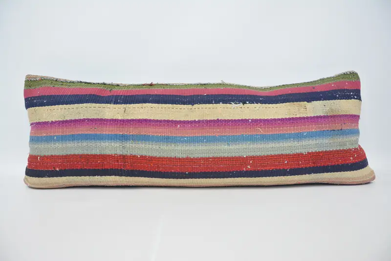 Gesticktes rosa Wurfkissen, 16x42 Vintage gestreiftes Kissen