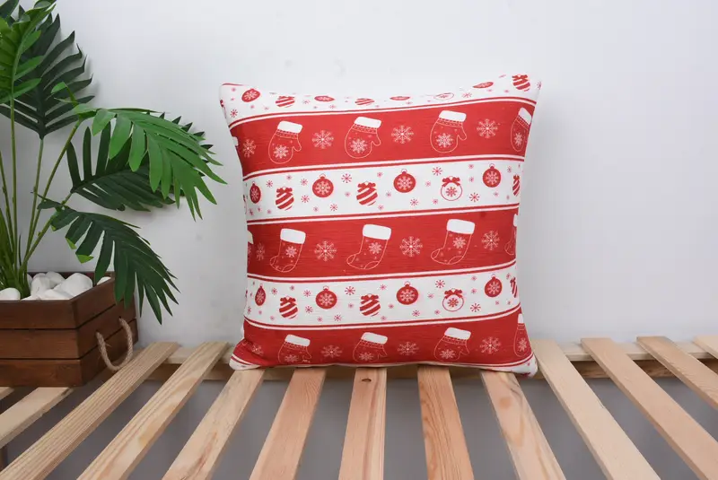 Rot-weiß gestreiftes Kissen, besticktes Vintage-Leinenkissen