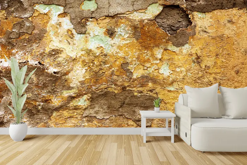Elegante Loft-Vintage-Tapete mit gelbem Bauernhaus-Aufdruck