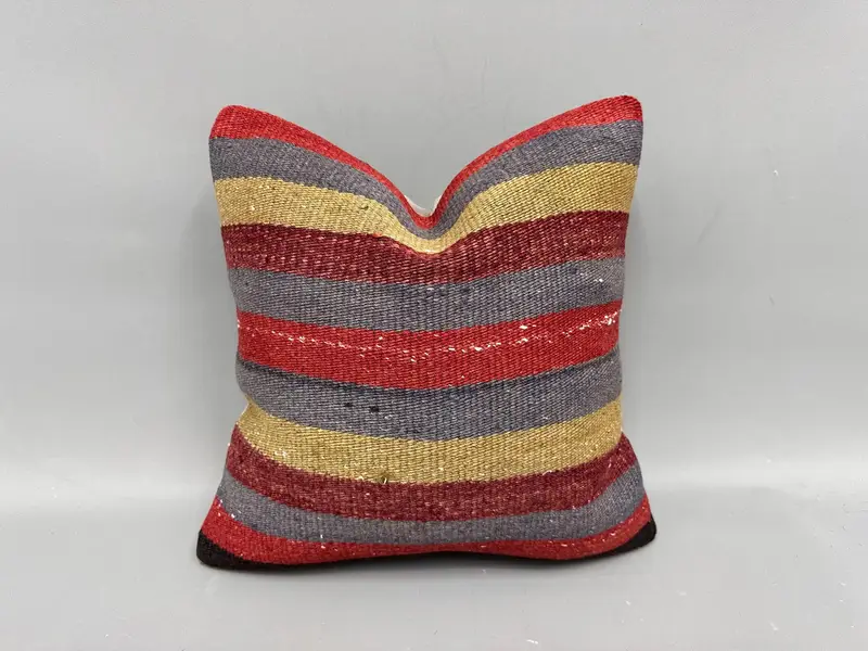 Rot gestreiftes Kissen, 16x16 besticktes Kissen mit Vintage-Charme