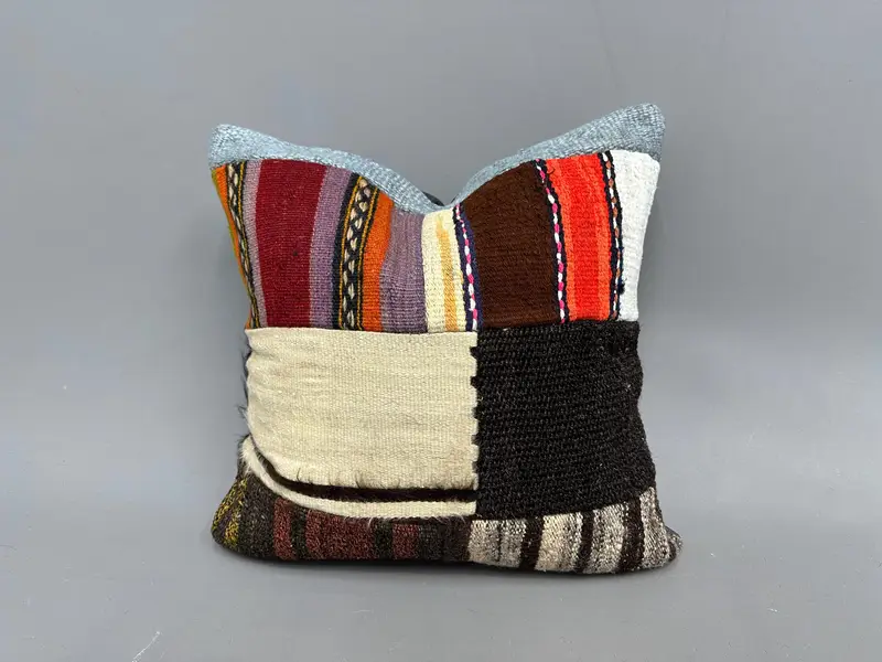 Besticktes Patchwork-Wurfkissen in Lila und Beige, handgefertigtes Vintage-Kissen
