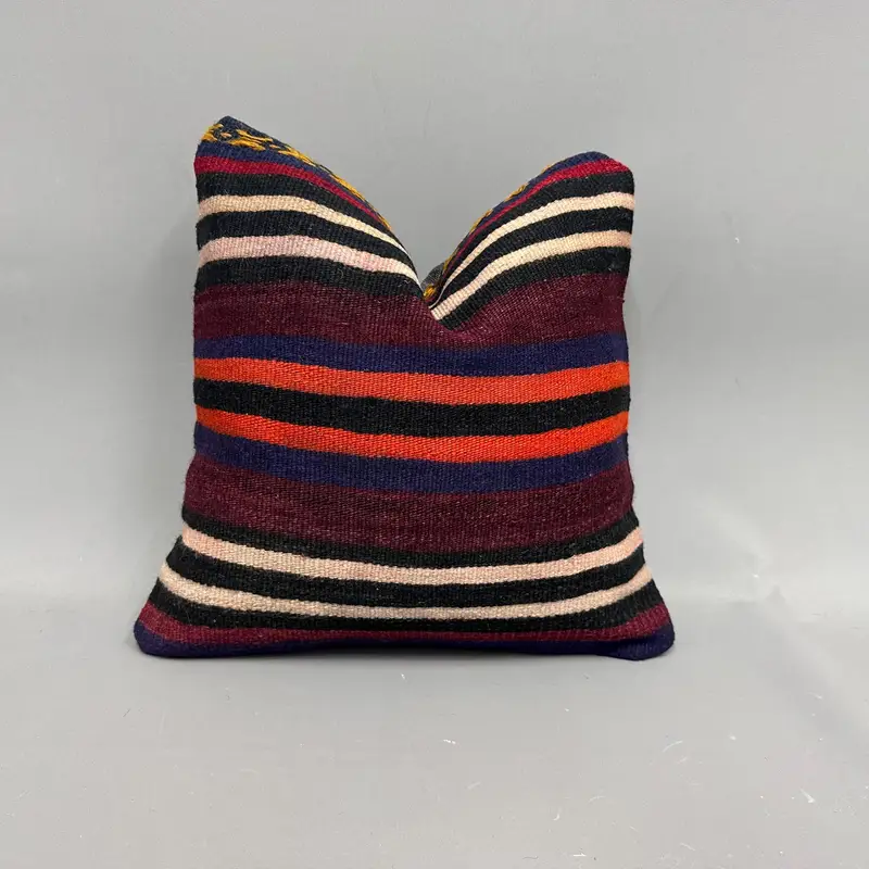 Rot & Lila gestreiftes Kissen, Vintage besticktes Kissen