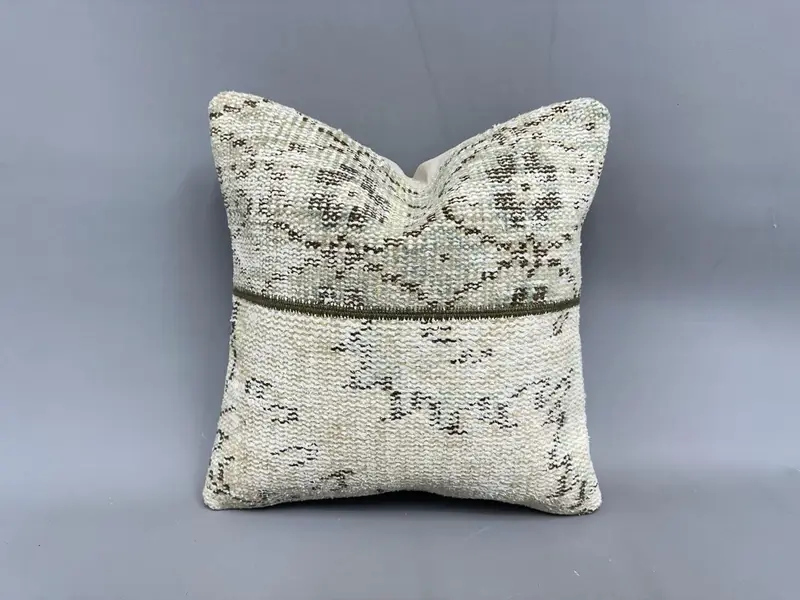 Handgewebtes Kelim-Wurfkissen, antikgrünes und braunes Patchwork-Kissen