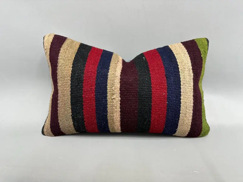 Rot-grün gestreiftes Wurfkissen, Vintage Kelimkissen