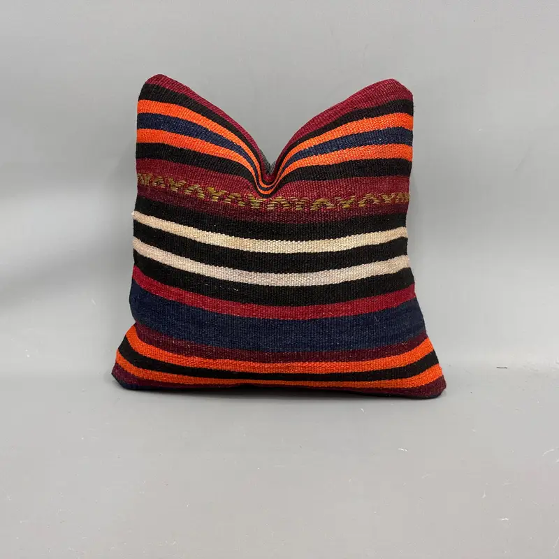 Orange gestreiftes Kissen, 16x16 besticktes Vintage Kissen