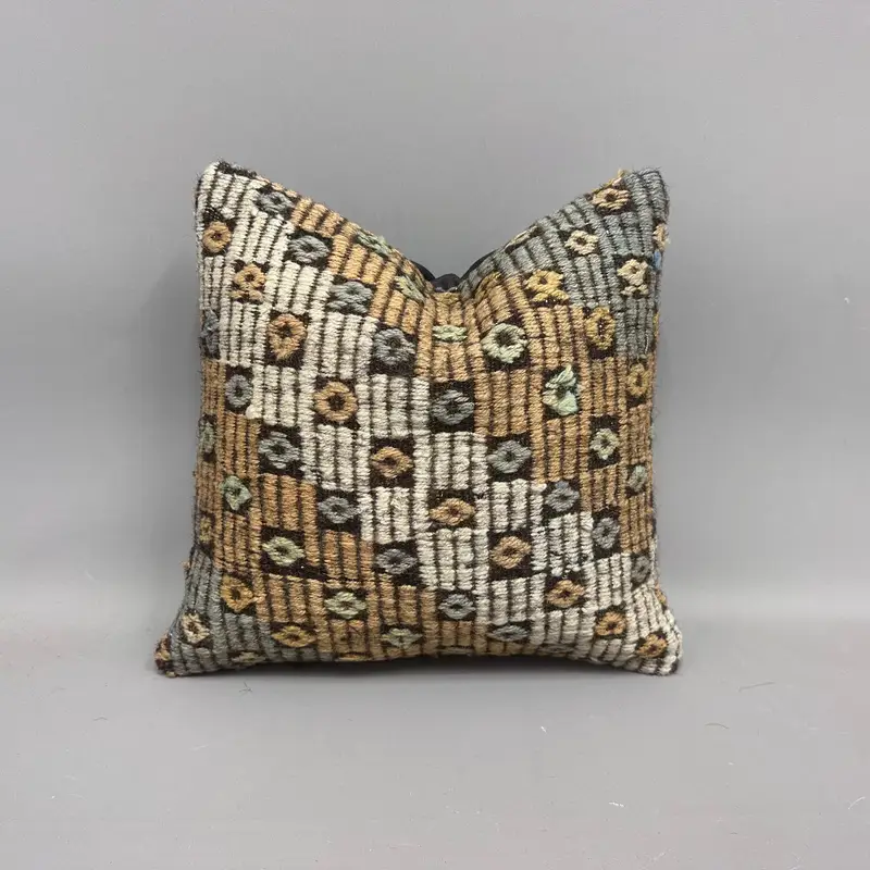 Handgewebtes Kelim-Wurfkissen, Vintage besticktes Kissen