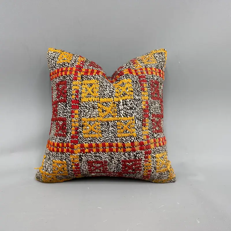 Orange & Rot besticktes Kelim-Wurfkissen, handgefertigtes Vintage-Dekor
