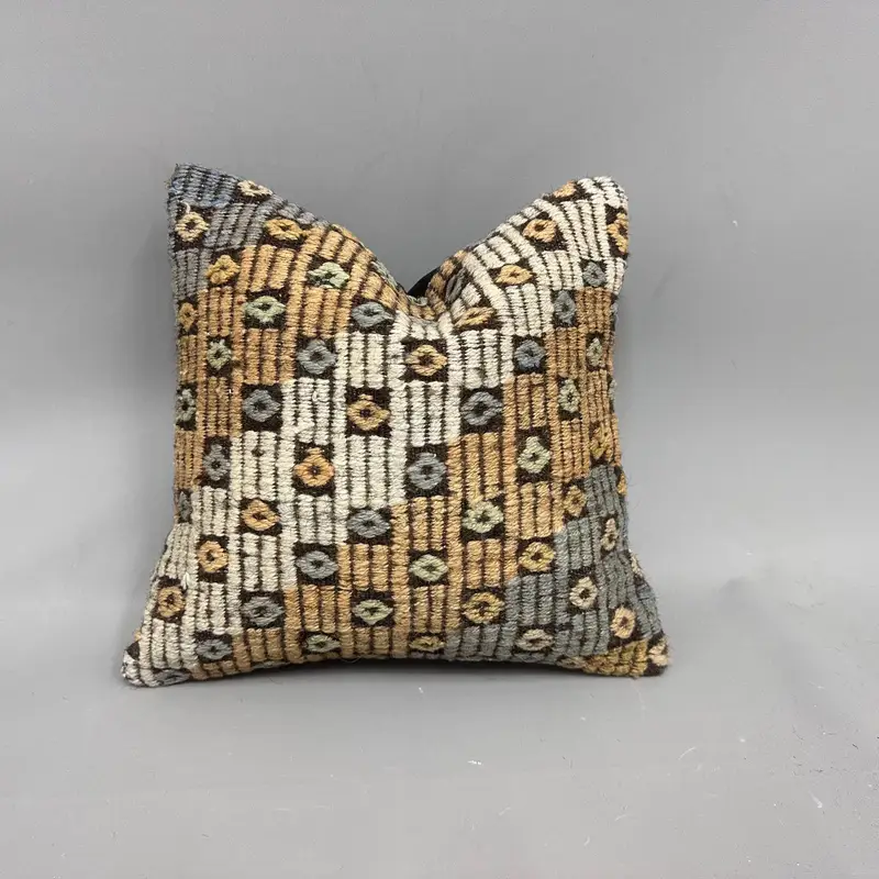 Geometrisches Kelim-Wurfkissen in Orange und Weiß, Vintage-Leinenkissen